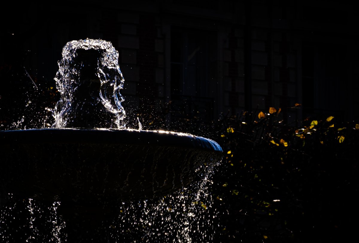Place des Vosges, une fontaine au soleil. Un traitementpour ne garder que l'Eau et la Lumière.
